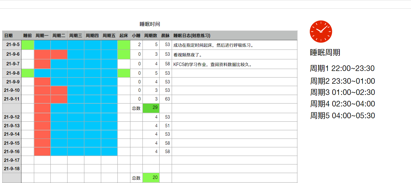 - 记录自己的睡眠周期数。